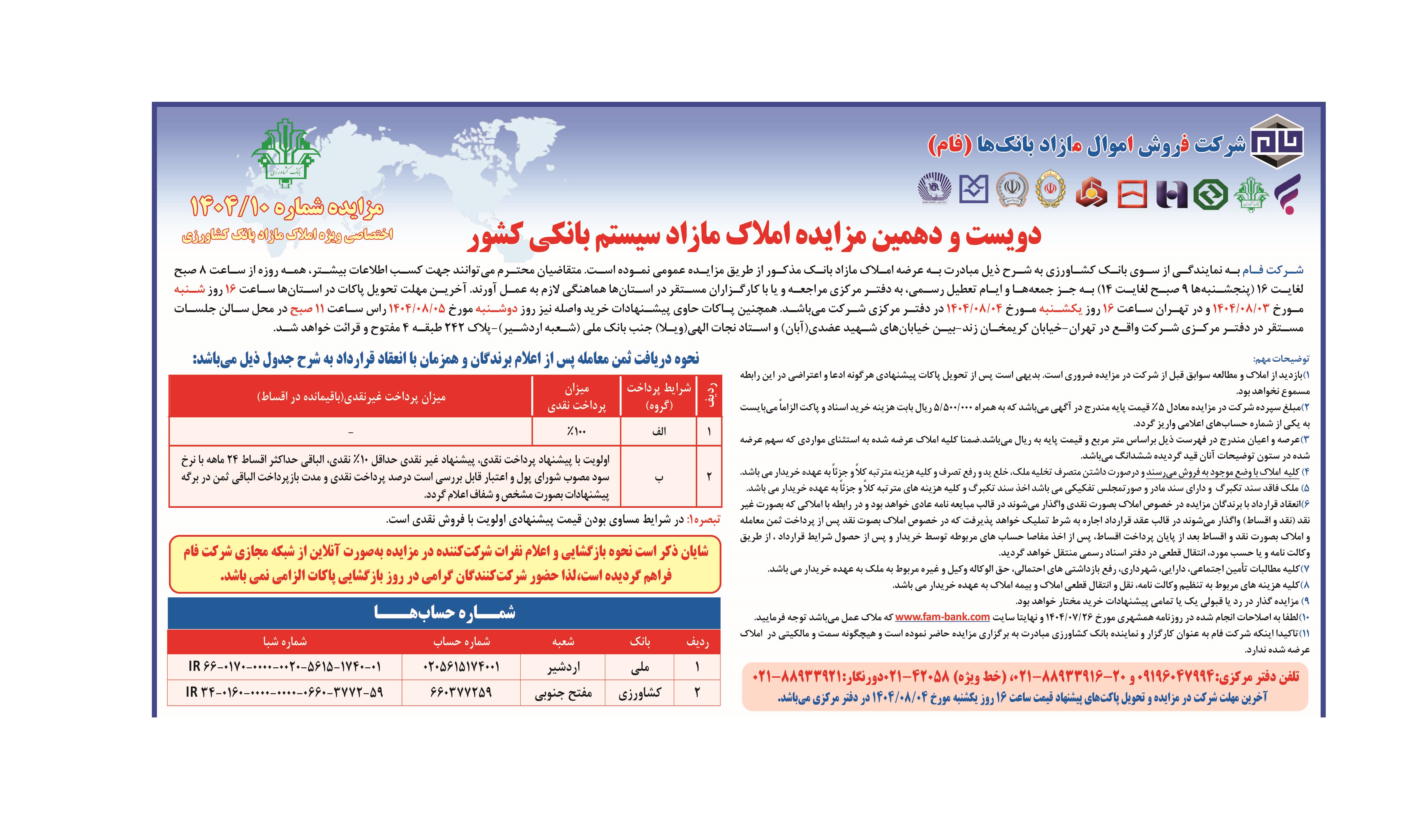 ادامهچهل و هفتمين مزايده فروش املاک مازاد بانک صادرات خراسان رضوي 4-1404