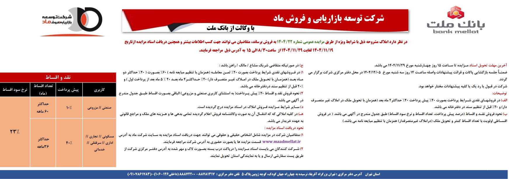 مزايده شماره 49 منطقه مازنداران بانک سينا جهت اطلاعات بيشتر به سايت بانک سينا مراجعه فرماييد