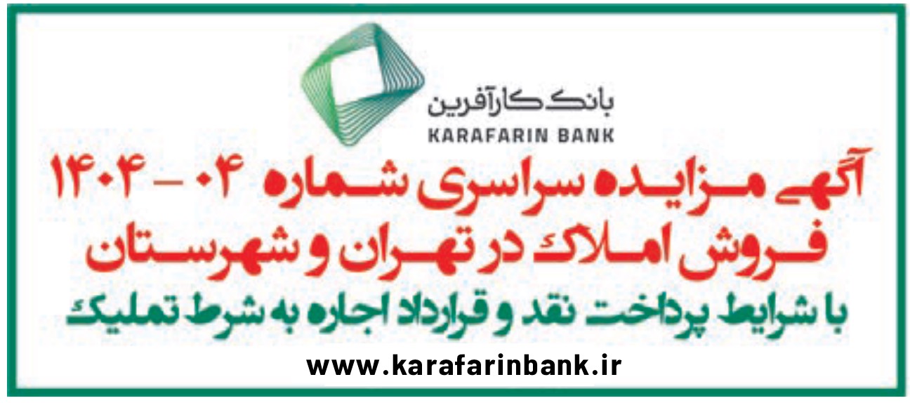 چهارمين مزايده سراسري املاک مازاد بانک کارآفرين در سال1404